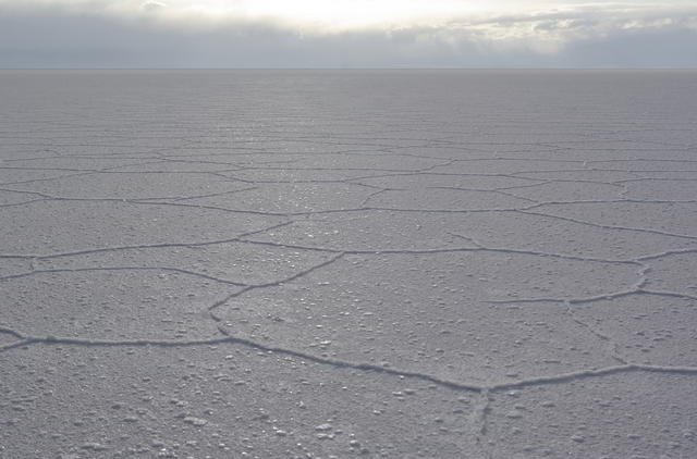Die Oberflaeche des Salar traegt eigenartige Muster.