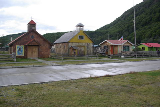 Villa O'Higgins - Kirche, Museum und Radiostation (v. l. n. r.)