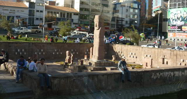 Exposition von Stuecken aus Tiwanaku, einer vorinkaischen Kultstaette.
